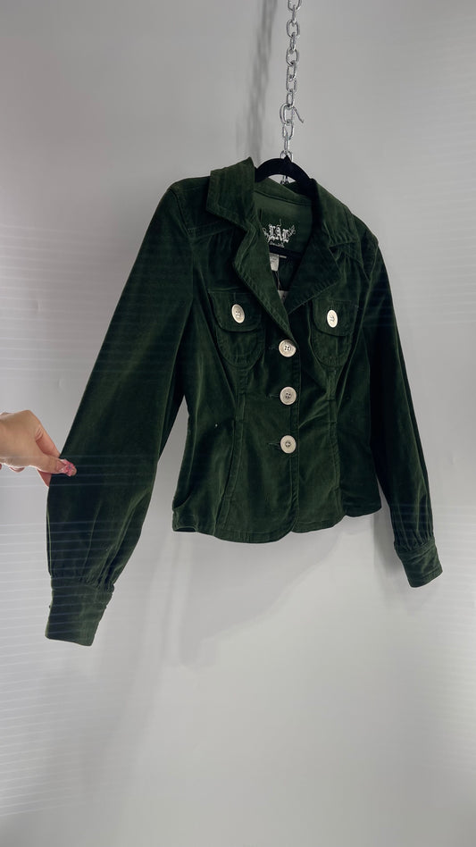 Deadstock VINTAGE 1990s Live a Little Green Corduroy Blazer Jacket with Tags Attached (Petite Medium)