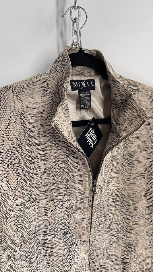 Vintage MIX IT Genuine Leather Grey Snakeskin Embossed Jacket (XL)