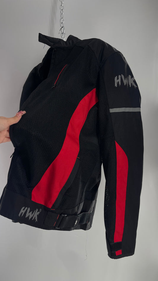 VINTAGE HWK Black/Red Motorcycle Riding Jacket with Padding (XXXL)
