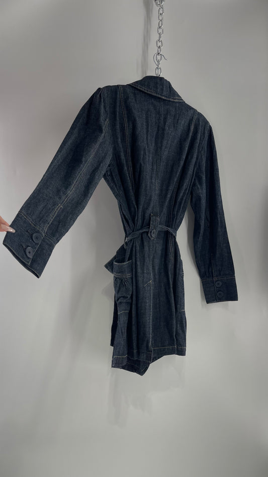 Vintage FRENCH CUFF Dark Denim Trench Style Jacket (XL)