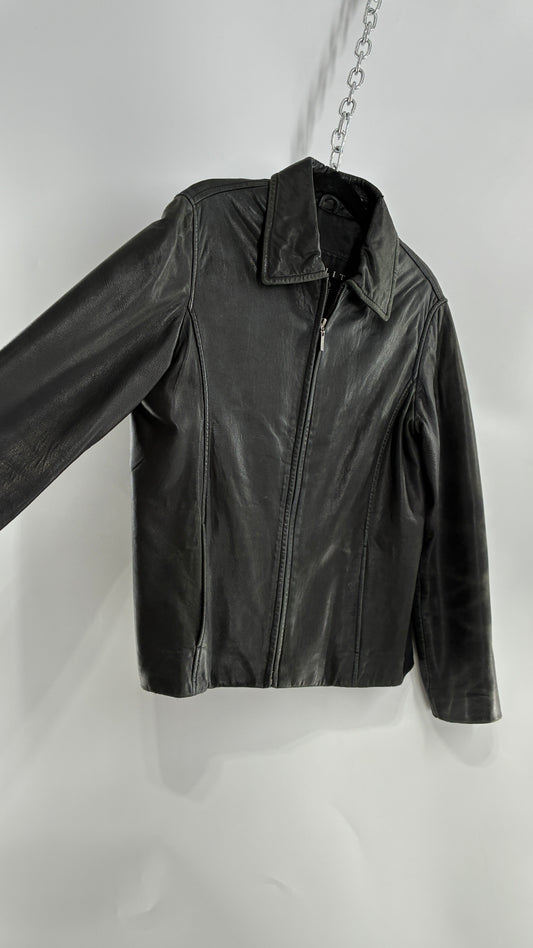 Vintage WINLIT New York Black Leather Collared Zip Front Paneled Jacket (Large)