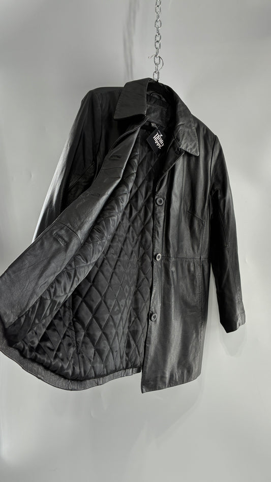 Vintage KATHY IRELAND Black Leather Jacket with Quilted Lining (Large)