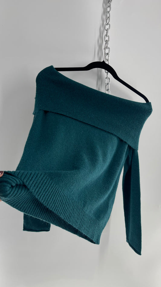 Anthropologie Teal Blue/Green Super Soft Off the Shoulder Knit Sweater (XS)