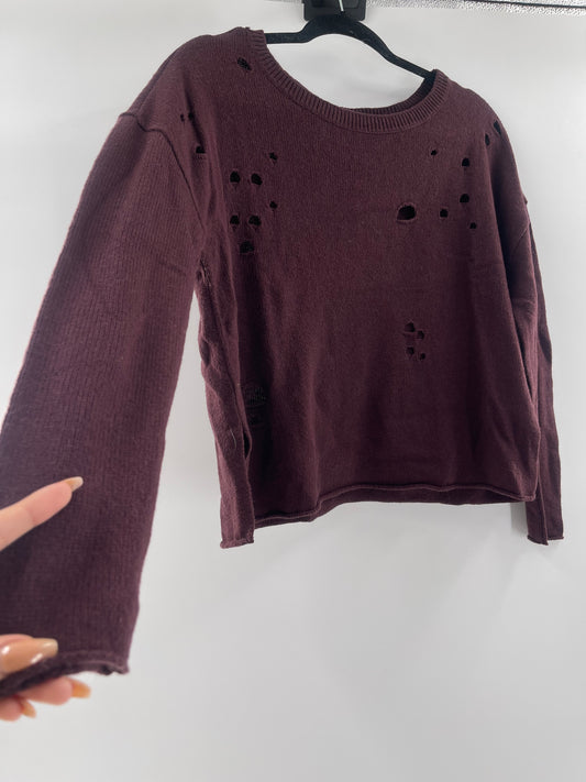 Urban Outfitters Distressed Burgundy Sweater (Small)