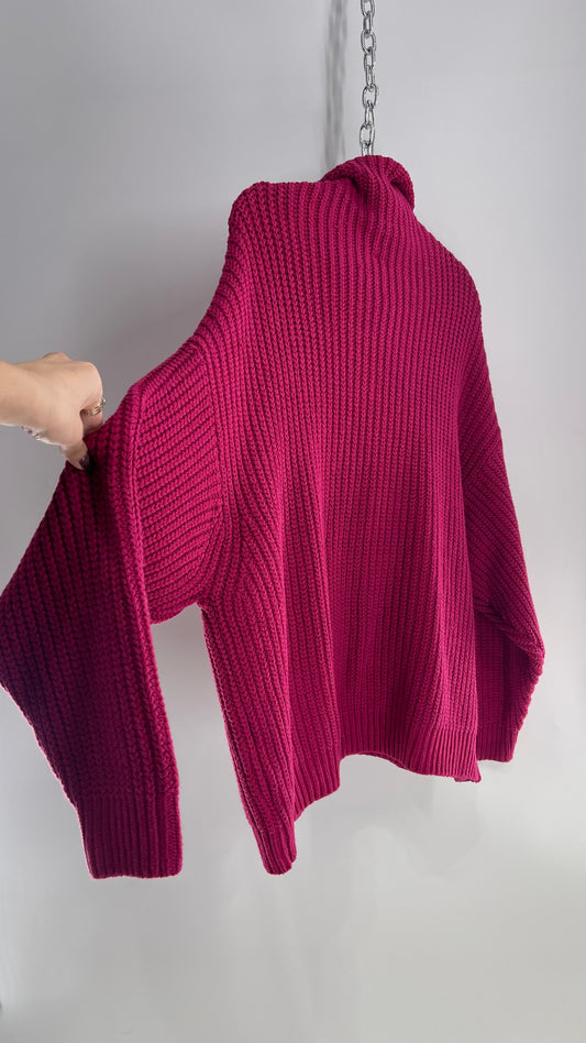 Free People Fuchsia Heavy Knit Sweater (Small)