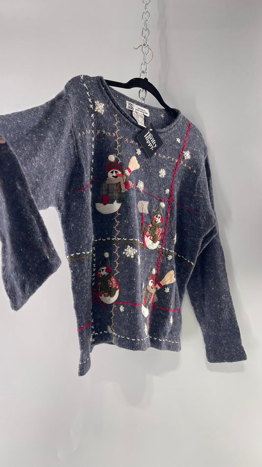 Vintage Urban Outfitters Christmas/Holiday Sweater with Festive Snowmen Snowflakes, and Contrast Stitch Detail (S)