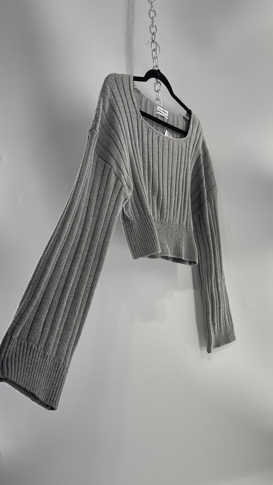 Urban Outfitters Grey Knit Ribbed Cropped Sweater (L)