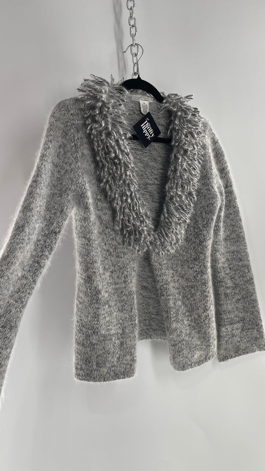IJJCID Vintage Grey Soft Cardigan with Shaggy Collar 38% Rabbit Angora 5% Lamb Wool (Medium)