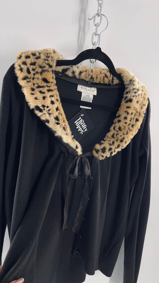 Vintage Cheetah Fur Trim Collar Cardigan (Large)