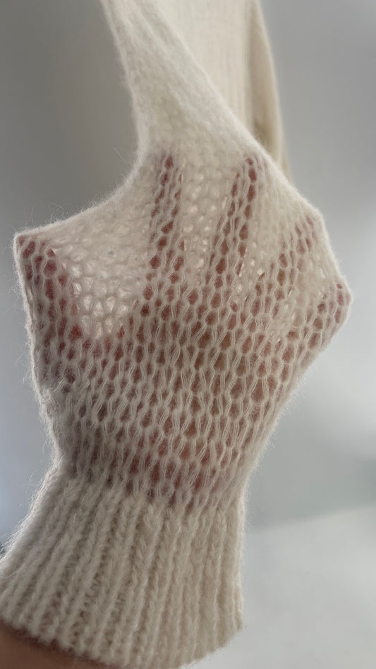 Free People White Open Knit Sweater 56% Alpaca (Medium)