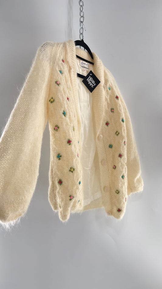 Vintage Suzelle 1980s Embroidered Rosette Sweater (Medium)