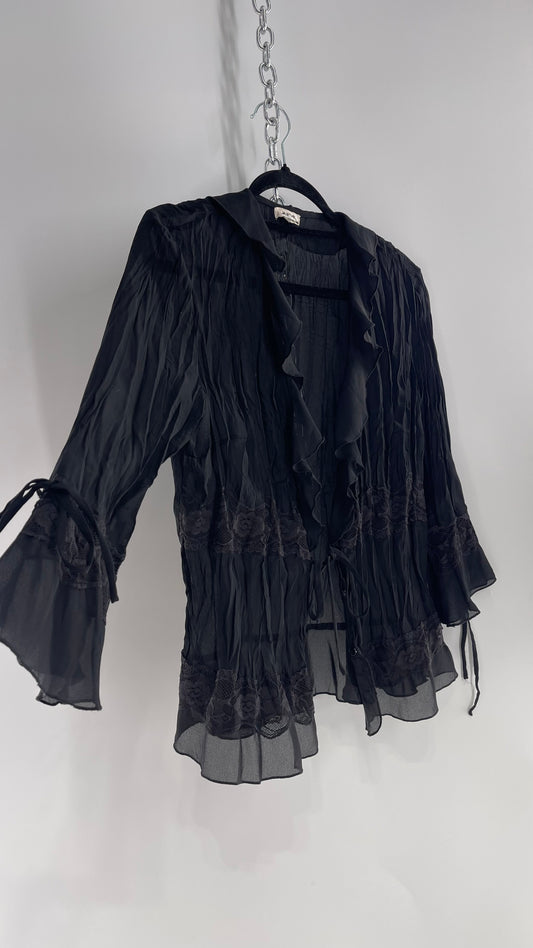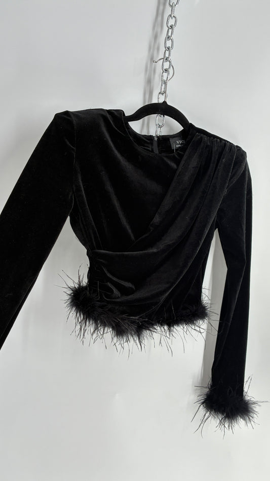 Vintage VICI Black Draped Long Sleeve with Ostrich Feather Hems and Cuff (XS)Regular price $39.00Regular priceUnit price per$86.00Sale price $39.00Sale