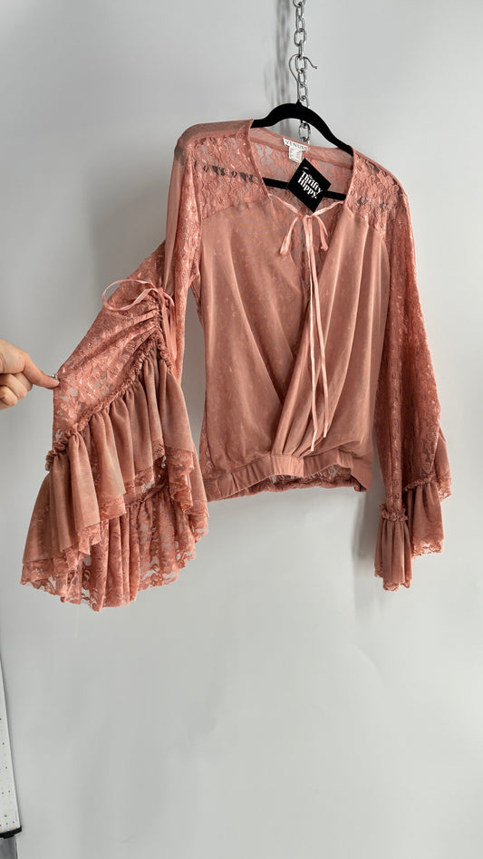 Vintage VENUS Blush Pink Lace Blouse with Voluminous Multi-Layer Bell Sleeves (Medium)Regular price $38.00Regular priceUnit price per$68.00Sale price $38.00Sold out