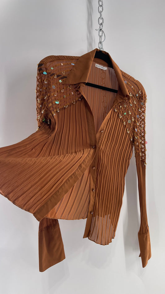VINTAGE KAELYN-MAX Orange Brown Pleated Blouse with Beaded Embellishments (Medium)Regular price $38.00Regular priceUnit price per$60.00Sale price $38.00Sold out