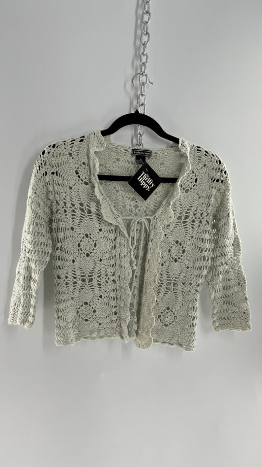 Vintage TAKEOUT Grey Crochet Knit Tie Bust Cardigan Top (Medium)Regular price $46.00Regular priceUnit price per$74.00Sale price $46.00Sale
