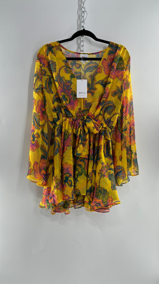 MISA Los Angeles KAIA Yellow Floral Bell Sleeve Long Sleeve Top/Micro Mini Dress with Tags (Small)Regular price $162.00Regular priceUnit price per$390.00Sale price $162.00Sale