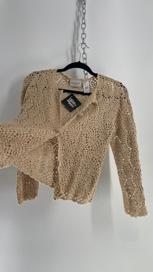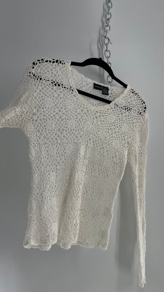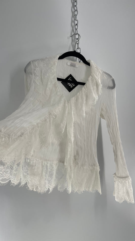 Vintage 1990s DressBarn Collection White Lace, Crimped, Ruffled Blouse (Small)