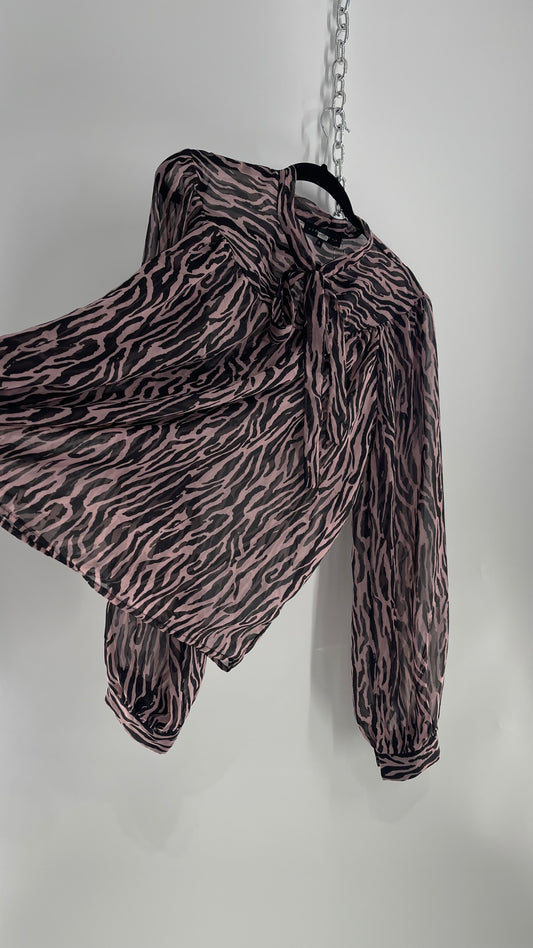 Endless Rose X Free People Lilac Zebra Tie Neck Sheer Blouse (XS)