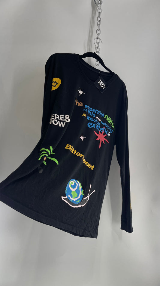 Men’s Worn Black Long Sleeve All Over Graphic (XL)
