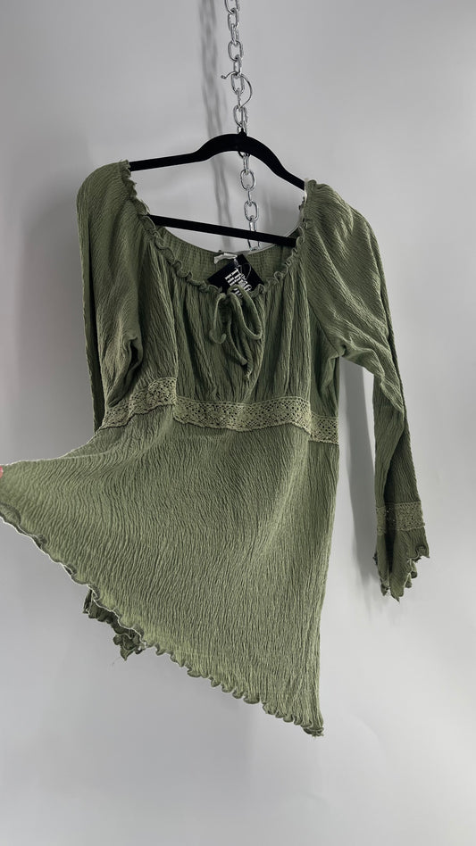 Vintage Fashion Bug Fairy Green Crimped MilkMaid Top (XL)