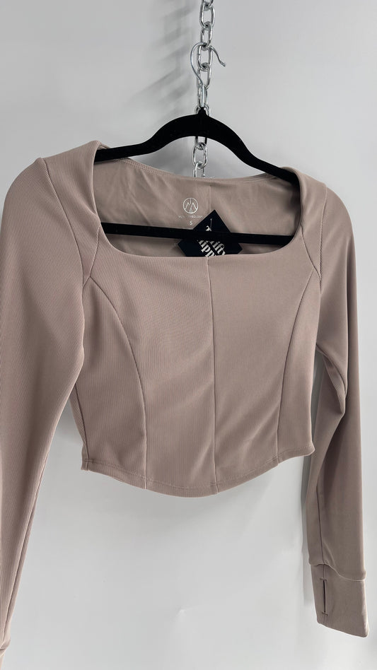 Move Theology Tan Ribbed Cropped Athletic Top with Built in Sports Bra (Small)