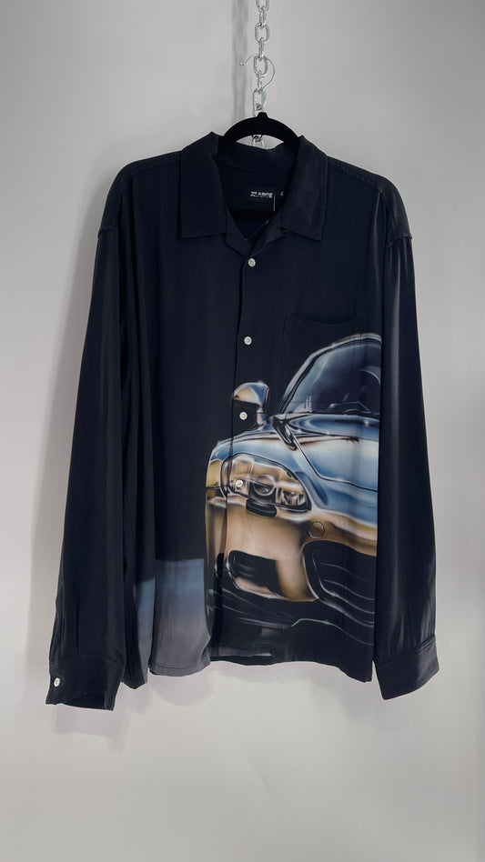 XLARGE Black 100% Rayon Men’s Button Up with HD Futuristic Car Graphic (XL)