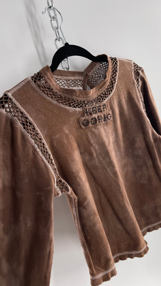 Free People Movement Distressed Keep Going Top with Mesh Details (Small