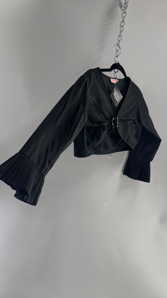 Vintage BLUSH Taffeta Shrug with Beaded Bust Closure and Pleated Sleeve (S/M)