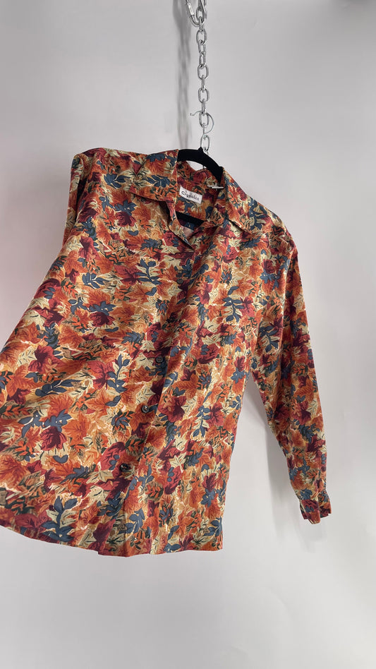 Vintage Crysalis Fall Toned Leaf Patterned 100% Silk Blouse (Small)