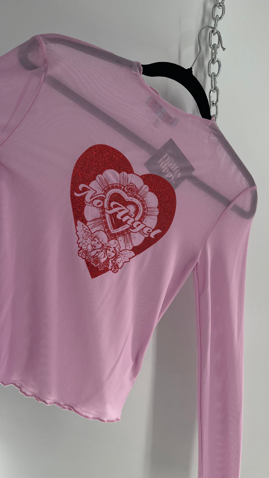 Urban Outfitters Purple Mesh Top with Glitter Heart (Medium)