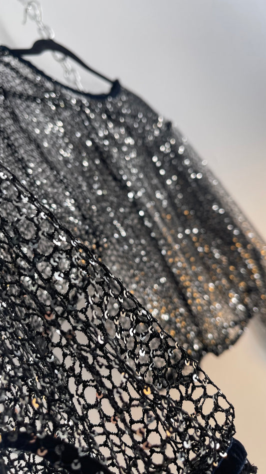 Free People Disco Black Mesh Blouse with Velvet Ribbon Trim (S/M)