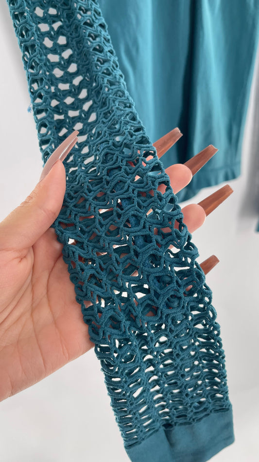 Free People Teal Spandex Top with Long Mesh Sleeves (XS)