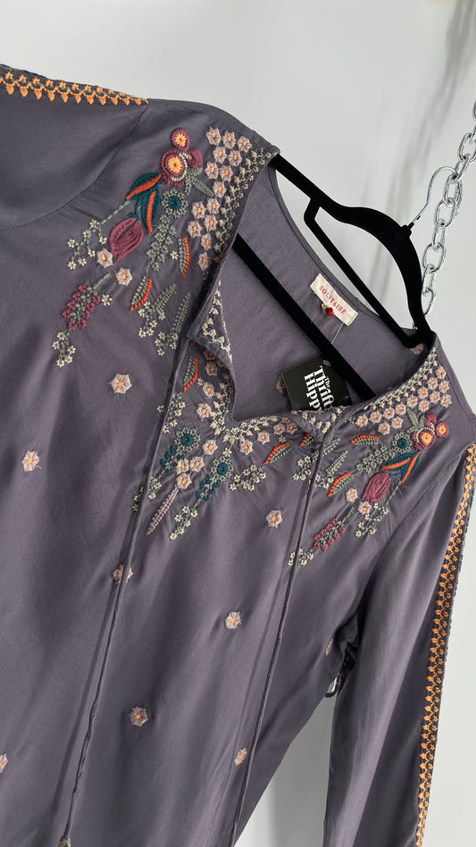 Anthropologie Solitaire Dusty Gray/Purple Embroidered Tunic Blouse (Medium)