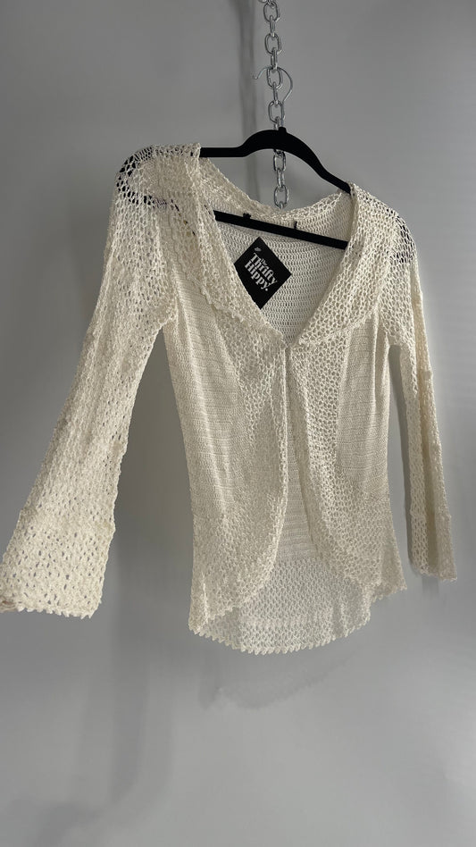 Vintage White Open Knit Crochet Cardigan (S/M)