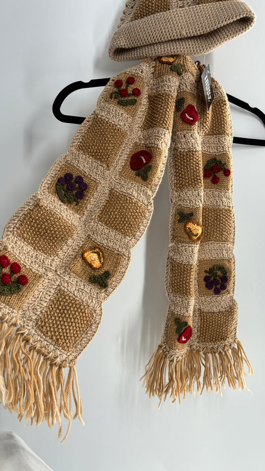 Vintage Crochet Knit Fruits of the Loom Hat and Scarf Set