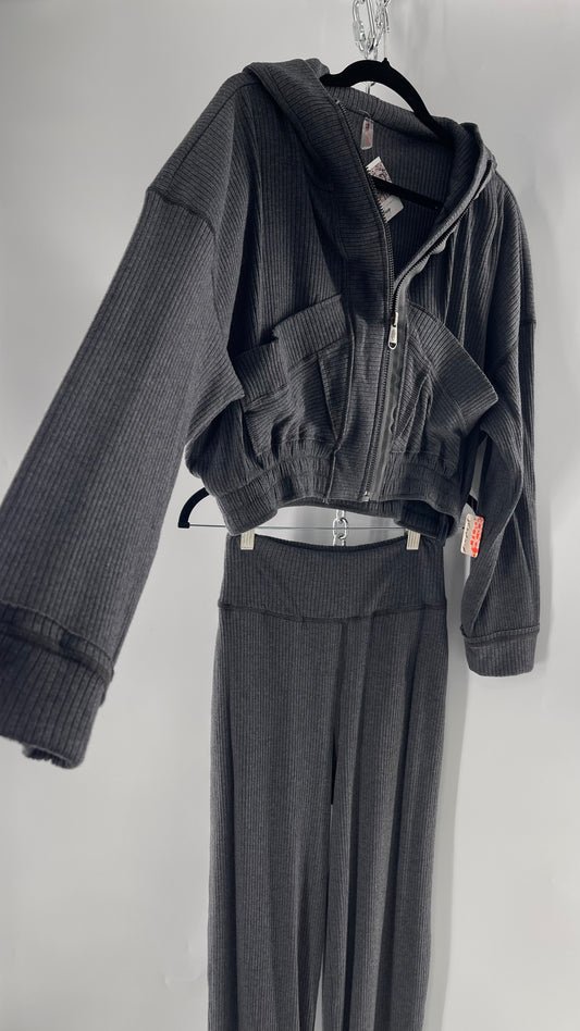 Free People Charcoal Slate Gray 2 Piece Set with Cropped Hoodie and Jogger Sweats with Tags Attached (XS)