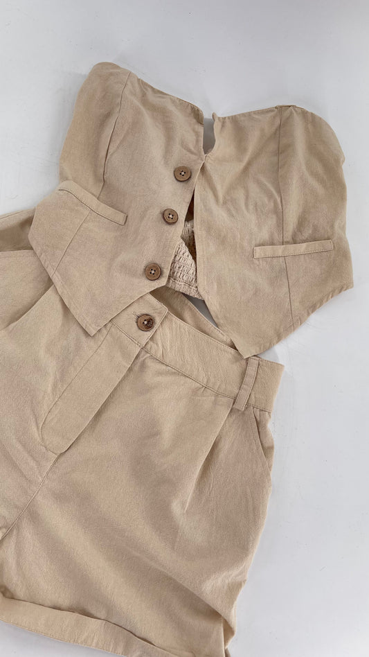 Intimately Free People Beige Vest and Shorts Set (Small)
