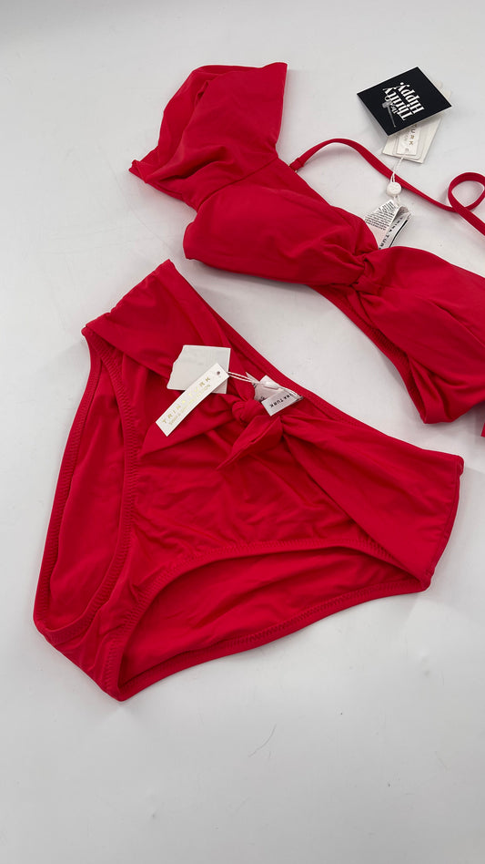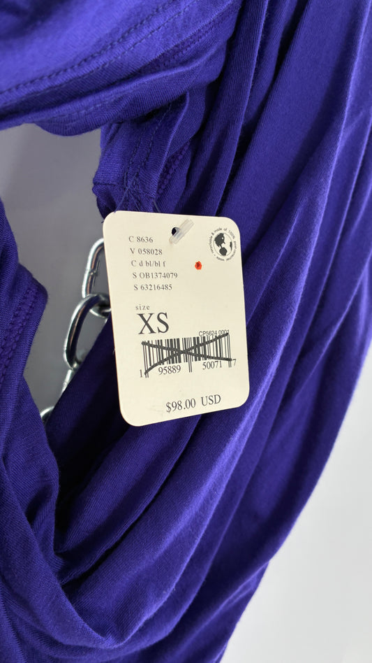 Free People 2 Piece Cobalt Purple Ruched Tank+ Cut Out Hip Strap Detail Flared Bottoms Set (Small)