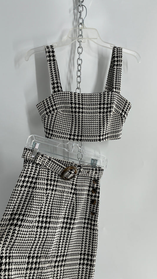 Free People Black and White Houndstooth Two Piece Set with Button Side Detailing and Belt (2)