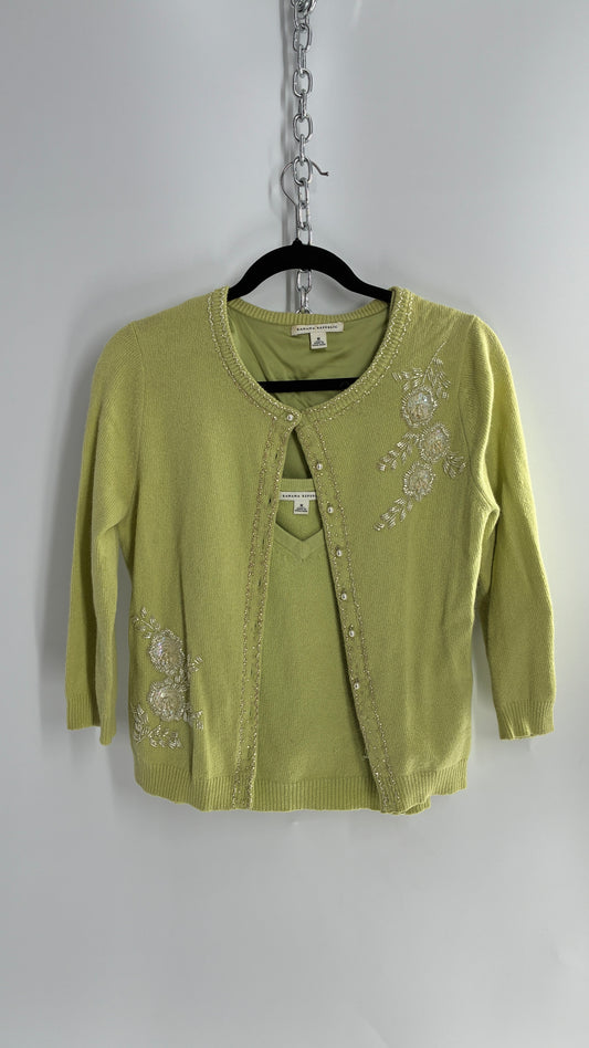 Vintage Banana Republic Bedazzled, Beaded Lime Green Cardigan and Knit Tank Set (Medium)