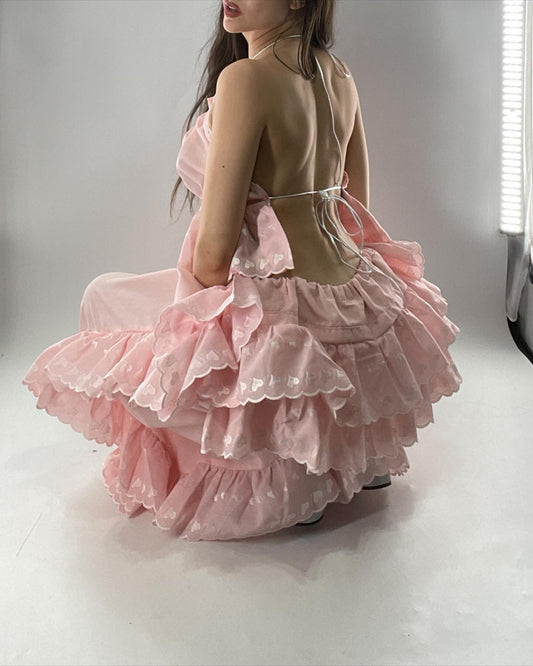 Vintage 2pc Pink Ruffled Set with Embroidered Hearts (XS-L)