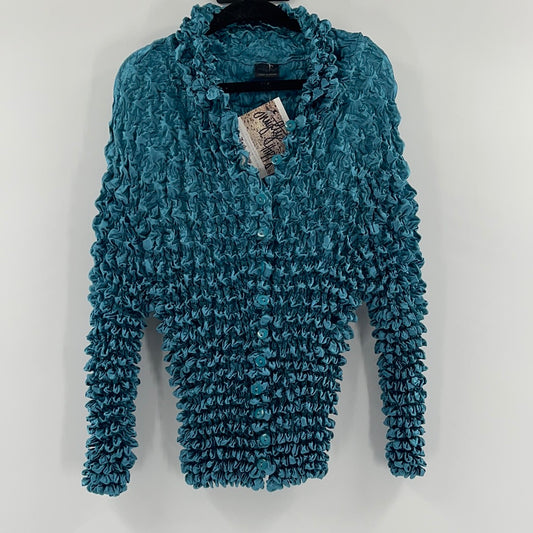 MagicScarf Petroleum Blue Popcorn Cardigan (OS)