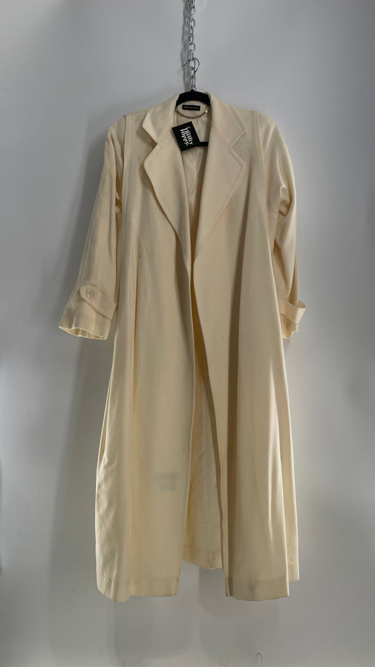 Vintage Sara Roberts Cream Ivory 100% Pure Wool Trench Duster Coat (Small)