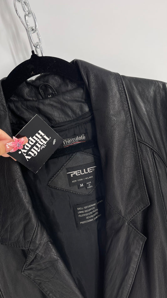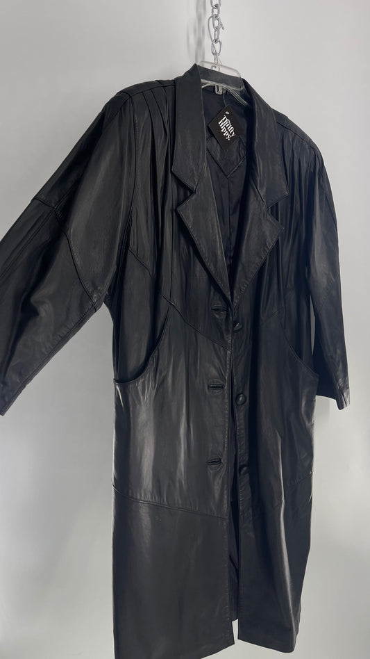 PELLE Vintage Black Leather Duster Coat (C) (Medium)