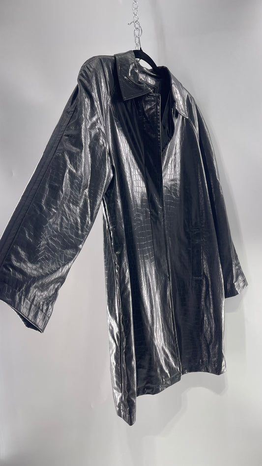FU DA NEW YORK Black Crocodile Embossed Coat (C) (XL)