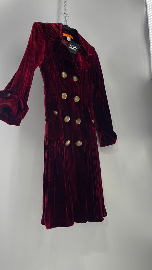 Cynthia Steffe Oxblood Red Velvet Double Breasted Gold Button Coat (XS)