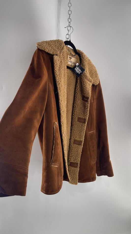 Vintage Heavy Duty Genuine Suede Leather Coat with Teddy Sherpa Lining (C) (Large/42)