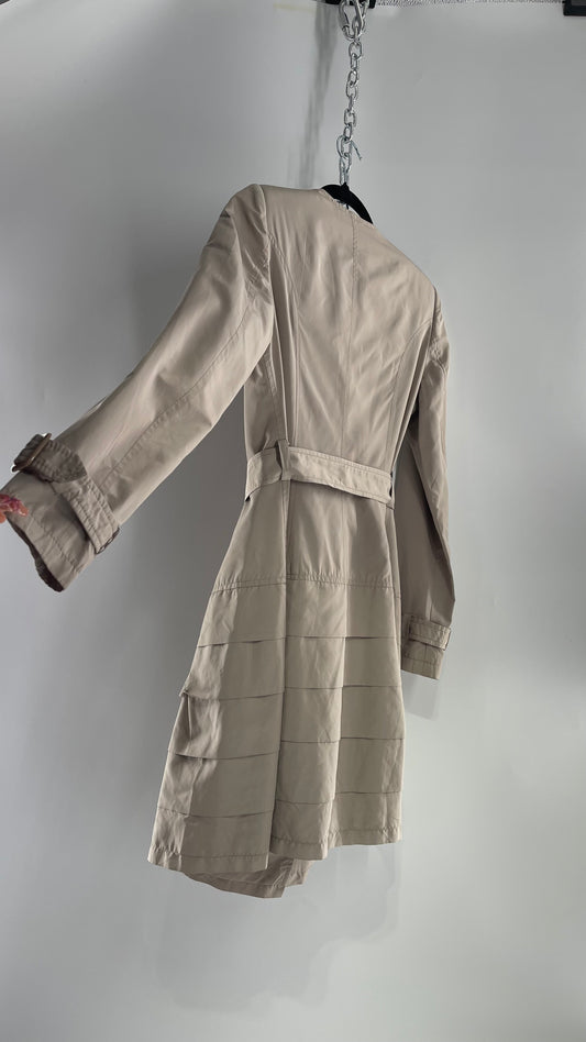 Vintage ESLA Beige Trench Coat with Ruffled Hem (Small)