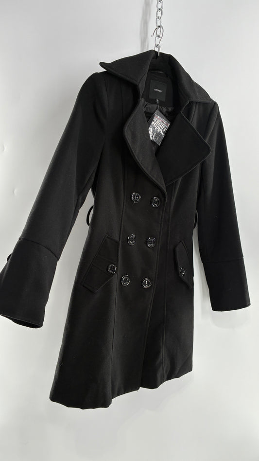 Vintage Black Double Breasted Button Coat with Button Bag (Small)