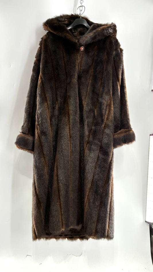 Vintage TALLY HO Hooded and Paneled, Vegan Fur Full Length Coat (Medium)